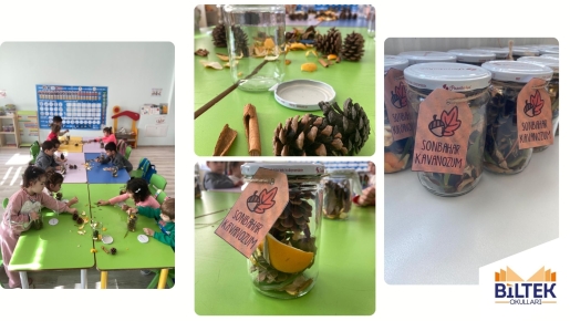 4 yaş grubu öğrencilerimiz, doğadan topladıkları malzemelerle sonbahar hatırası kavanozları hazırladı ...
