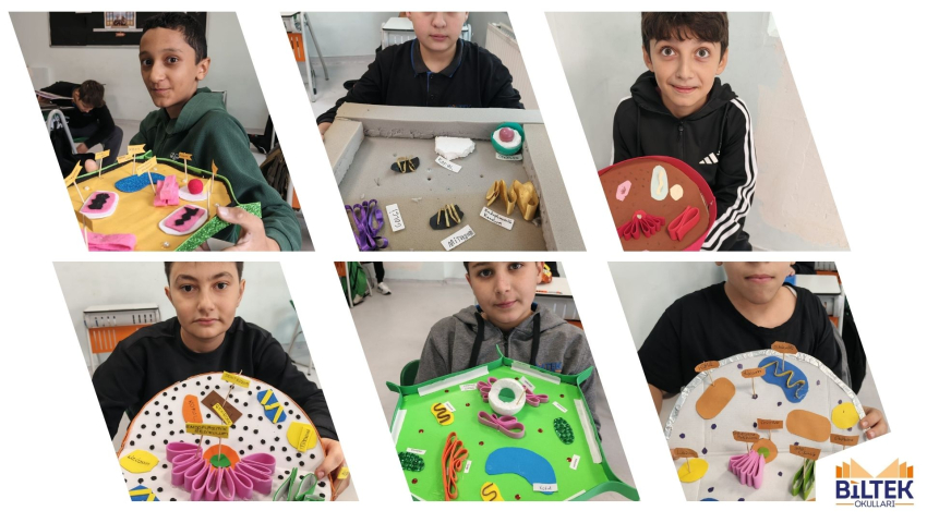 Öğrencilerimiz, hücre organellerini tanıyarak hem bitki hem de hayvan hücrelerinin yapılarını öğrendiler. Daha sonra bu bilgilerini yaratıcılıklarıyla birleştirip farklı materyaller kullanarak kendi hücre modellerini tasarladılar.