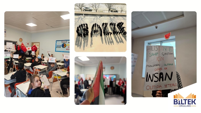 Koridorlarımızda yankılanan “Diren Filistin” sesleri, çocuklarımızın dilinde bir duaya, bir temenniye dönüştü; “Özgür Filistin” nidaları yüreklerden yükseldi.