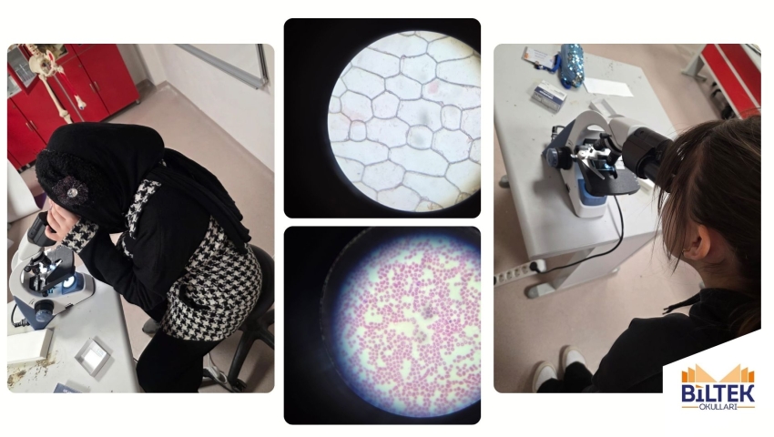 5.sınıf öğrencilerimiz, soğan zarı ve kan hücrelerini mikroskopla inceleyerek bitki ve hayvan hücreleri arasındaki şekil farklarını uygulamalı olarak gözlemledi; öğrenmeyi deneyimleyerek pekiştir
