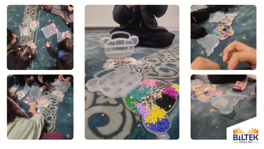 Etkinlik kapsamında çocuklar, farklı renk ve boyutlardaki boncukları kullanarak kendi özgün tasarımlarını oluşturdu. Bir arada çalışmanın ve üretmenin mutluluğunu yaşayan öğrenciler, yaptıkları takıları büyük bir gururla sergiledi.