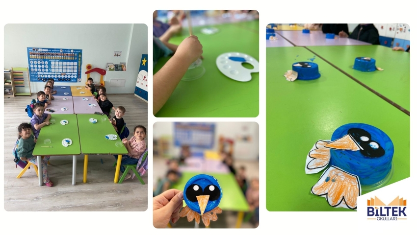 4 yaş grubu öğrencilerimiz, mavi rengi pekiştirdikleri ve “Açık–Kapalı” kavramını somut olarak öğrendikleri keyifli bir sanat etkinliği gerçekleştirdi. Minikler, kuş temalı çalışmalarıyla hem eğlendi hem de el becerilerini geliştirdi.