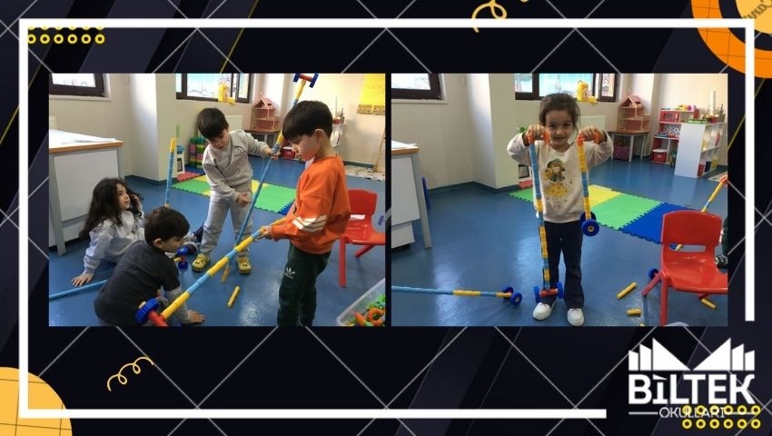4 yaş öğrencilerimiz, STEM dersimizde “Araçları Tanıyorum” teması kapsamında bastonlu yürüteç modeli tasarladı.