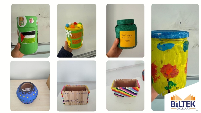 Okulumuzda Ahlak ve İnanç dersi kapsamında öğrencilerimize “Kendi Hadis Kutunu Tasarla” adlı bir ödev verildi. Öğrencilerimiz, hayal güçlerini kullanarak birbirinden renkli, eğlenceli ve özgün hadis kutuları hazırladı.