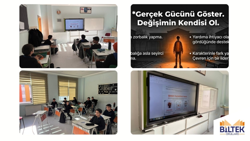 Okulumuz Rehberlik Servisi tarafından öğrencilerimize yönelik gerçekleştirilen “Şiddeti Önleme ve Şiddetsiz İletişim” konulu bilgilendirme semineri başarıyla tamamlanmıştır. Öğrencilerimizin aktif katılımıyla geçen seminerin oldukça verimli olduğu gözlemlenmiştir. Süreç, rehberlik çalışmaları kapsamında takip edilmeye devam edilecektir.