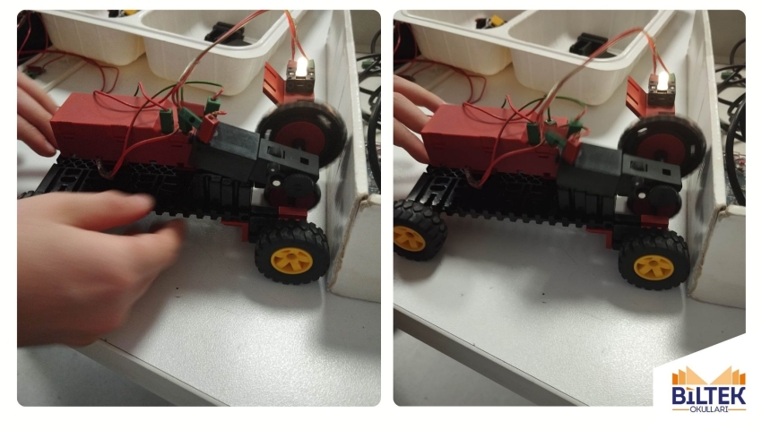 Öğrencilerimiz, motor ve dişli çarklarla kendi arabalarını tasarlayarak mekanik sistemleri keşfetti ve problem çözme becerilerini geliştirdi.