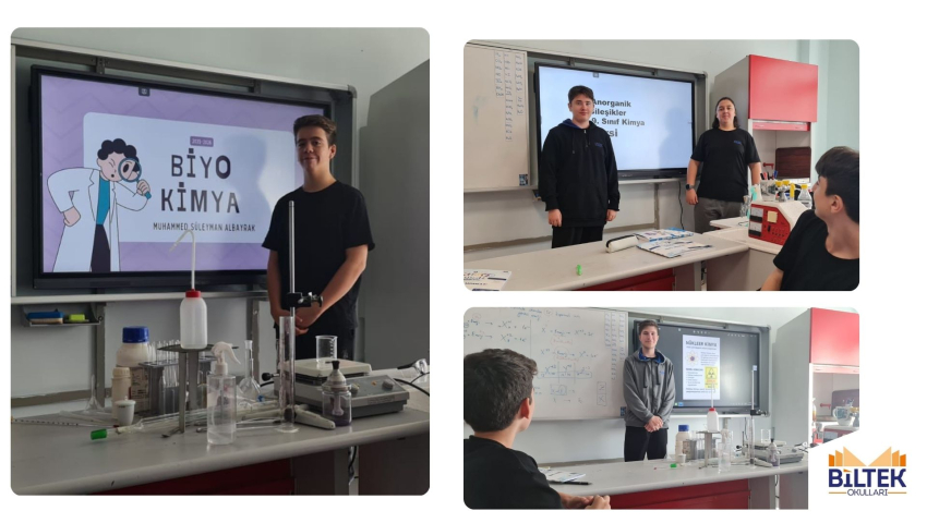 Özel Ankara Biltek Anadolu Lisesi 9-A ve 9-B sınıfı öğrencileri, kimya dersinde “Kimyanın Alt Disiplinleri” konusunu pekiştirmek amacıyla hazırladıkları sunumlarla etkili bir öğrenme deneyimi yaşadılar.