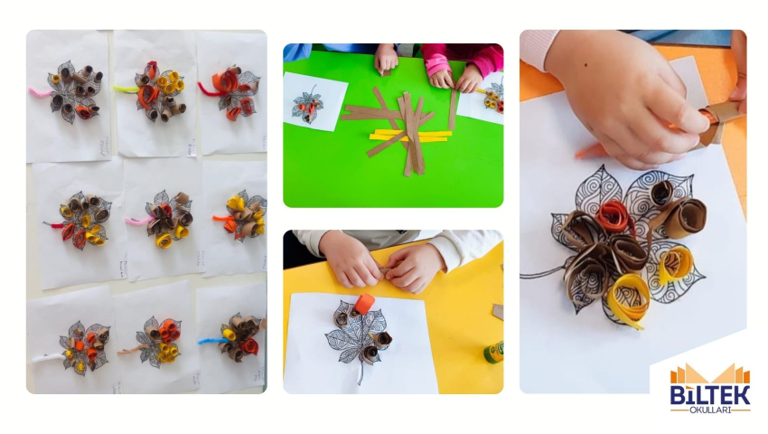 Renkli kâğıtları kıvırarak, bükerek ve şekillendirerek sonbahar temalı desenler ve süslemeler oluşturan çocuklarımız, el becerilerini geliştirirken keyifli bir etkinlik deneyimi yaşadılar.