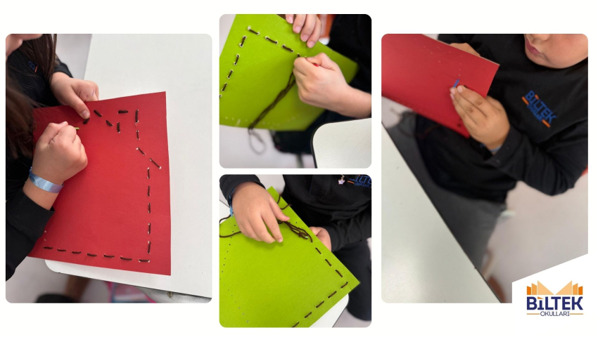 İlkokul 2. sınıf öğrencilerimiz, renkli kartonlar ve iplerle yaptıkları dikiş etkinliğiyle hem el becerilerini geliştirdi hem de eğlenceli vakit geçirdi.